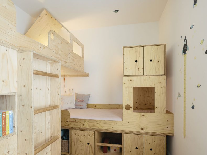 Die Falkenried-Terrassen in Hamburg Eppendorf wurden Ende des 19. Jahrhunderts als Arbeiterwohnungen gebaut. Während des Krieges teilweise zerstört, ist das Ensemble inzwischen denkmalgeschützt. Die Aufgabe, in diesem Kontext aus zwei Terrassenwohnungen á 32 qm eine optimale Maisonette für eine vierköpfige Familie zu planen, erforderte daher sowohl Feingefühl als auch Effizienz.